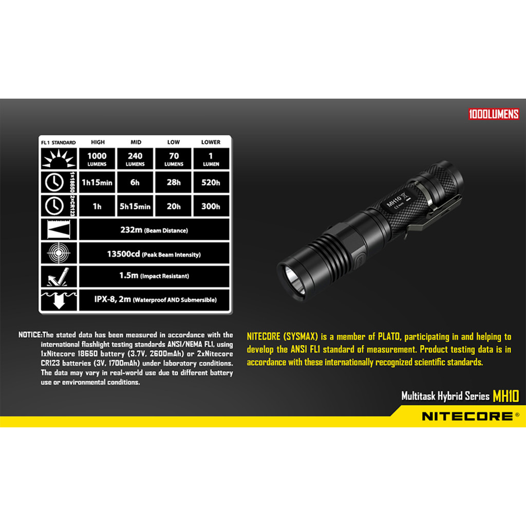 – Μέγιστη ισχύ δέσμης έως και 1000 lumens