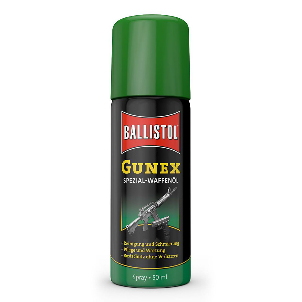 Λάδι μακράς συντήρησης με ισχυρές αντιοξειδωτικές και αντιπαγωτικές δυνατότητες – Spray 50 ml Για τη μακροπρόθεσμη συντήρηση των μεταλλικών εξαρτημάτων, ακόμη και σε συνθήκες πάγου ή καύσωνα (-50 ° C έως 100 ° C). Σε συνθήκες πάγου βοηθά τα όπλα να μην κάνουν εμπλοκές. Εισχωρεί μεταξύ μετάλλου και υγρασίας, σε πολύ μικρές ρωγμές, καθαρίζει, διατηρεί επιφάνειες , δεν κολλάει και δεν ξεραίνεται. Το Gunex είναι απαλλαγμένο από σιλικόνη, χλωριωμένους υδρογονάνθρακες και χλωροφθοράνθρακες που βλάπτουν το όζον. Με Gunex, ό, τι μένει προστατεύεται από την οξείδωση, ακόμη και σε υγρές συνθήκες! Διασφαλίζει την λειτουργία των μηχανισμών των όπλων, φροντίζει και προστατεύει τις κάννες. Διαλύει τις ρητίνες από τα ακατάλληλα λάδια. Κατάλληλο για πτυσσόμενα καλάμια ψαρέματος, ανοξείδωτα μέρη σκαφών. Προστατεύει από την θαλάσσια υγρασία. Εμποδίζει το πάγωμα των κλειδαριών. Διατηρεί την μπαταρία, τον διανομέα και τις επαφές του πηνίου ανάφλεξης καθαρά, αποβάλλοντας την υγρασία και εμποδίζοντας την διείσδυση του νερού.
